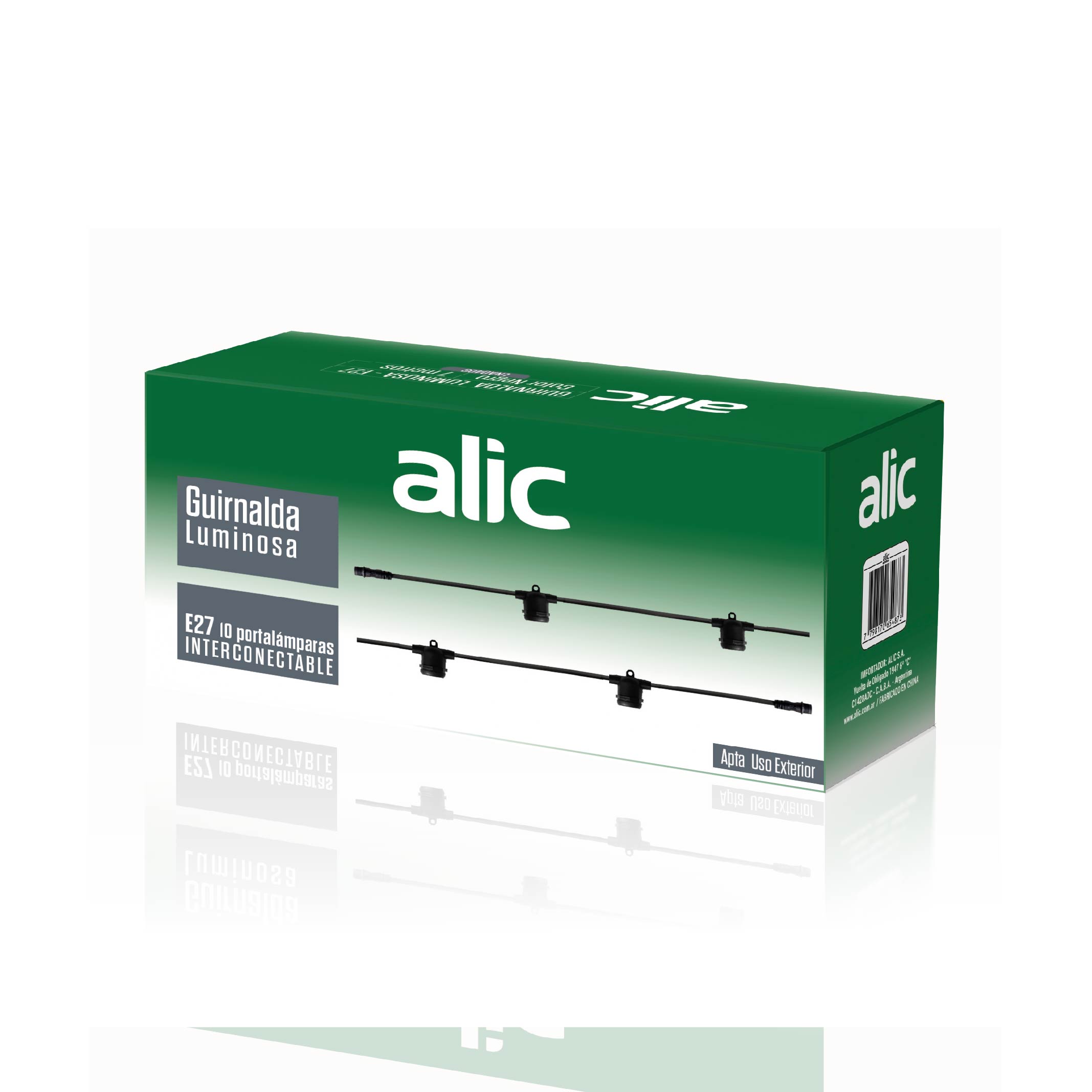 | Nota | 10 Portalámparas E27, Distancia entre Portalámparas 50 cm, Interconectable |